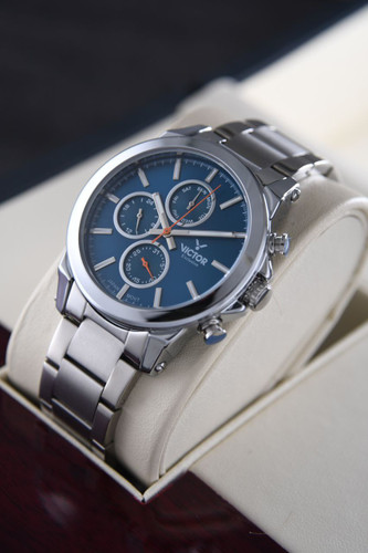 ساعتمردانه برند ویکتور شرکتی سه موتوره فول تایم بند استیل و ضدآب و رنگ ثابت شیشه ضدخش ارسال با باکس اصلی