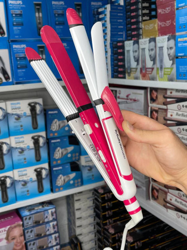 اتومو ۴ کاره دارای 4 صفحه متفاوت فر عربی ،اتو مو ،ویو مو ،بابلیس درشت کارایی:صاف کردن و فر کردن موی سر دارای سیم گردان 360 درجه