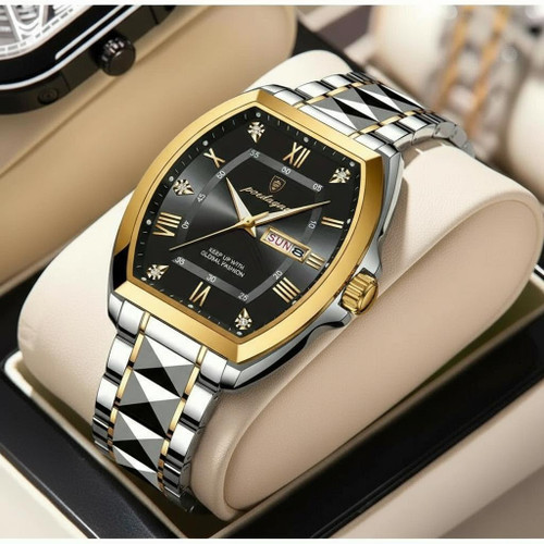 ساعت olevs الوز مردانه موتور کوارتز مقاوم در برابر آب طرح الماس دارای روز شمار ایام هفته صفحه شب نما بند فولاد استیل قفل پروانه ای استیل مخفی شیشه سافایر ضدخش