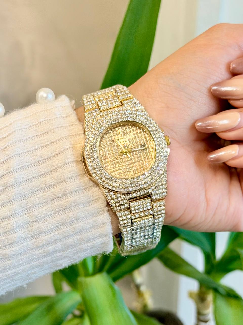 Patek Philipe پتک فیلیپ زنانه نیم نگین کیفیت عالی دارای تقویم دارای قفل پروانه ای دارای ۳ رنگ