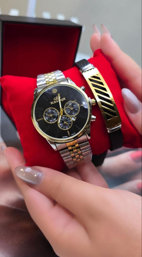 ساعت مردانه برند الگانس به همراه دستبندچرمی رنگ ثابت