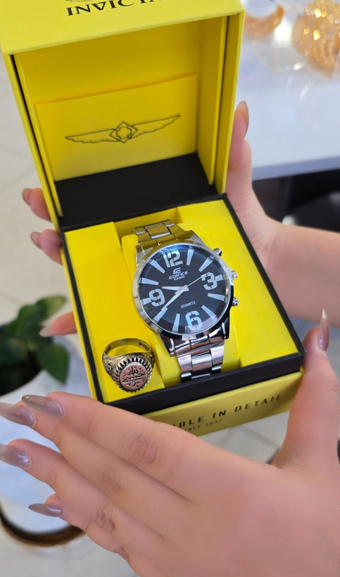 ست ساعت Edifice و انگشتر حسبی الله مردانه رنگ ثابت