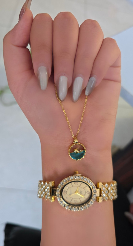 ست ساعت و گردنبند نهنگ آبی زنانه رنگ ثابت