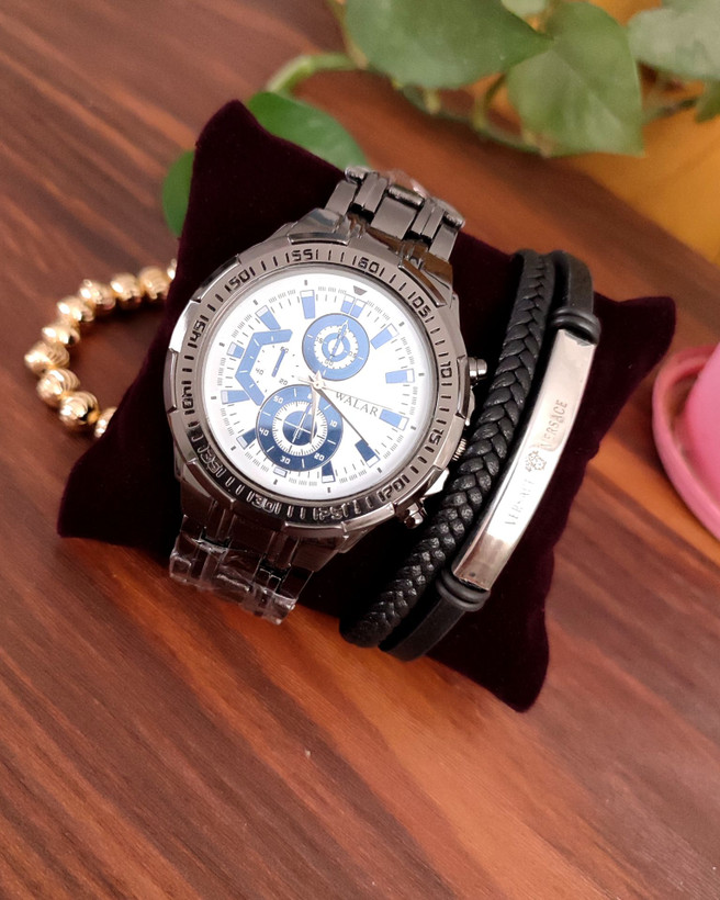 ست ساعت مردانه مارک والار طرح کاسیو ادیفایس به همراه دستبند چرمی دولاین بهترین گزینه برای کادو و هدیه به همراه جعبه کادویی