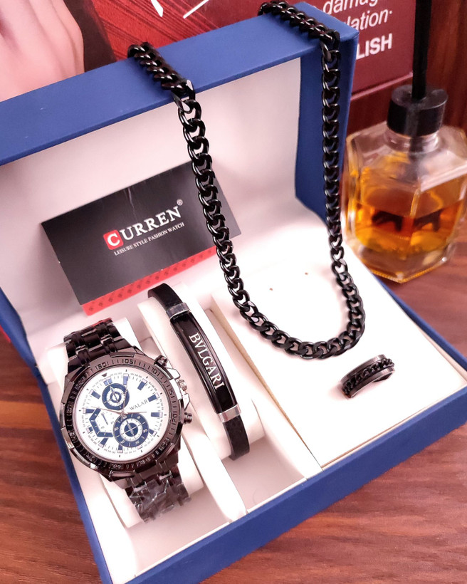 ست ساعت مردانه مارک والار طرح سه موتوره به همراه دستبند چرمی به همراه حلقه دور کارتیر استیل و گردنبند کارتیر بهترین گزینه برای کادو و هدی