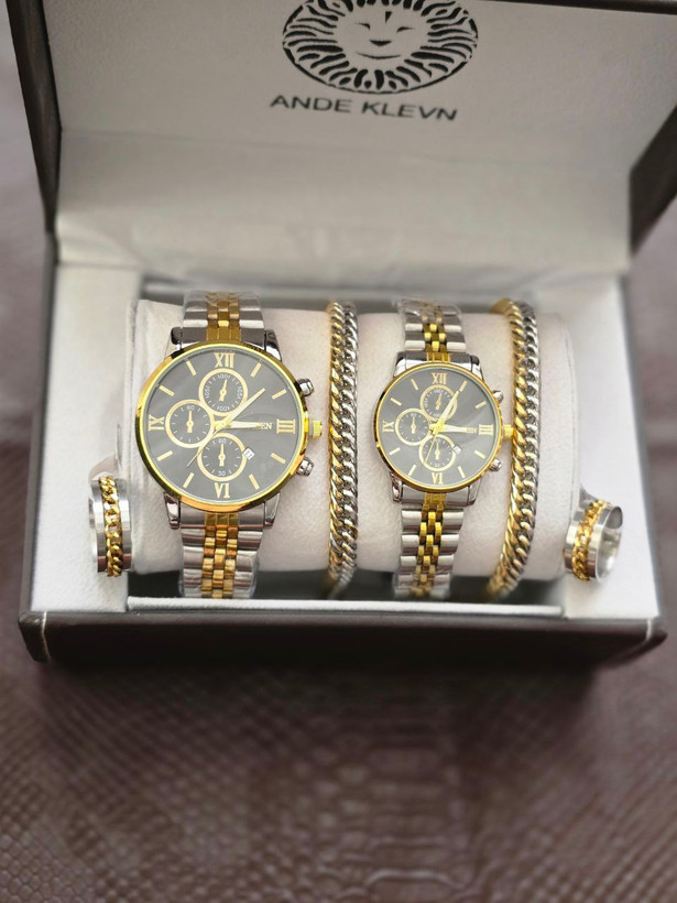 ست ساعت زنانه و مردانه بند استیل برند سیتیزن ساعت ها دارای روزشمار دو عدد دستبند کارتیر استیل و دو تا انگشتر کارتیر به همراه دو عدد جعبه کادویی و باتری یدکی