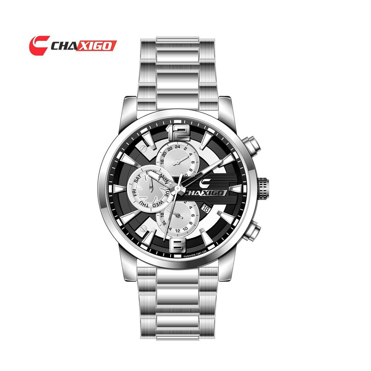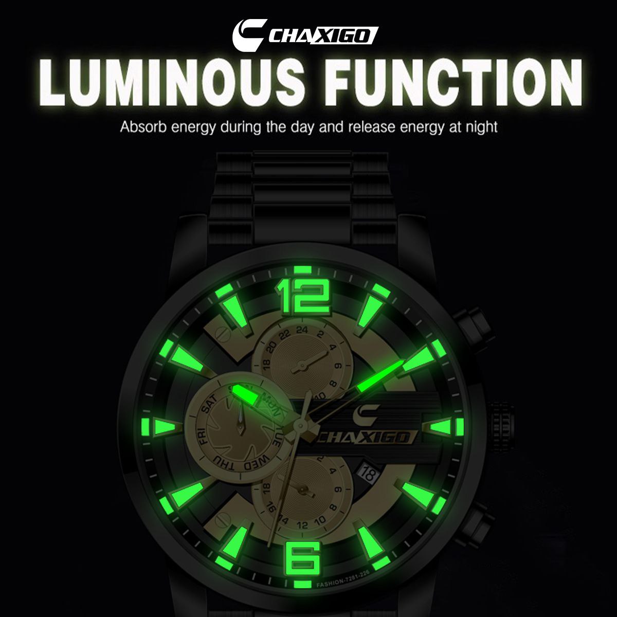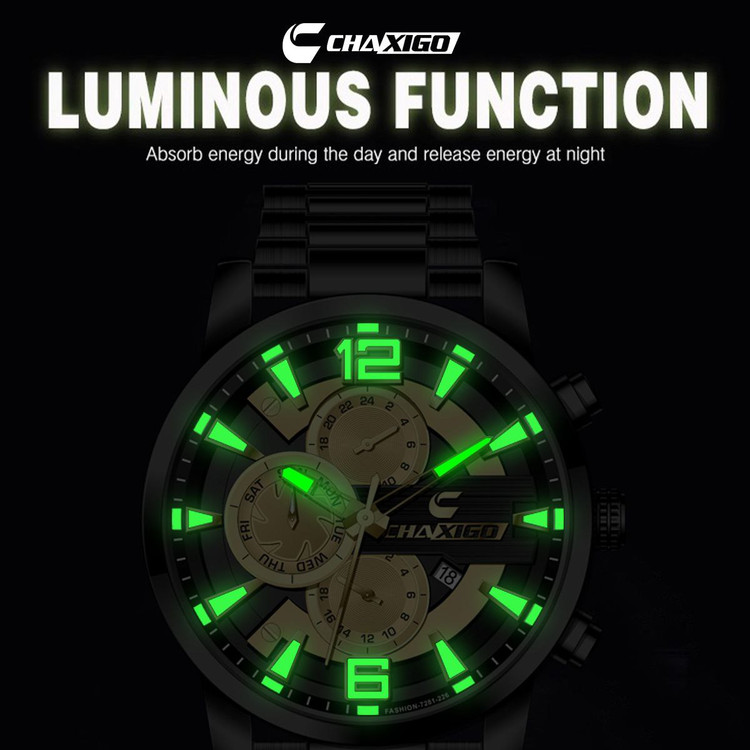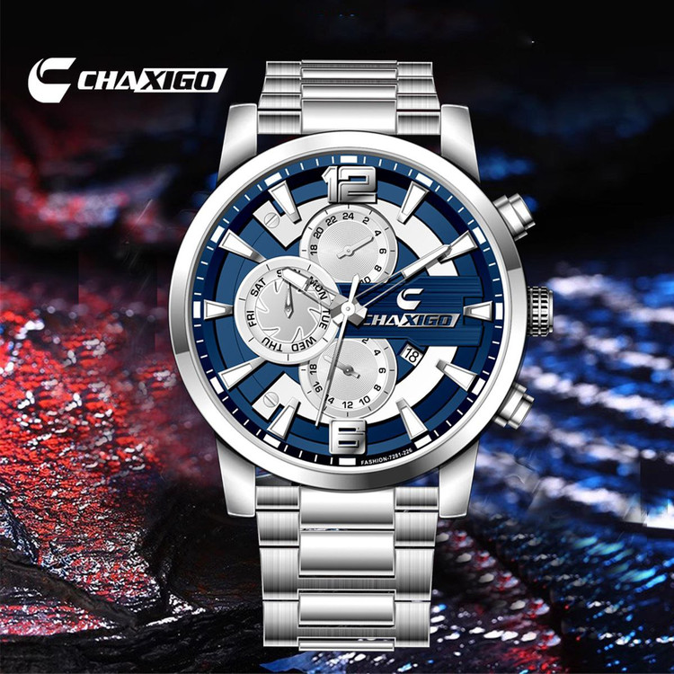 ساعت مردانه صفحه شب نما روز شمار طرح کرنوگراف برند شرکتی کیفیت عالی بنداستیل ضخامت ۱۴میلی متر قطر صفحه ۴۰.۵میل ضدآب شیشه معدنی رنگ ثابت قفل کلیپسی موتور کوارتز