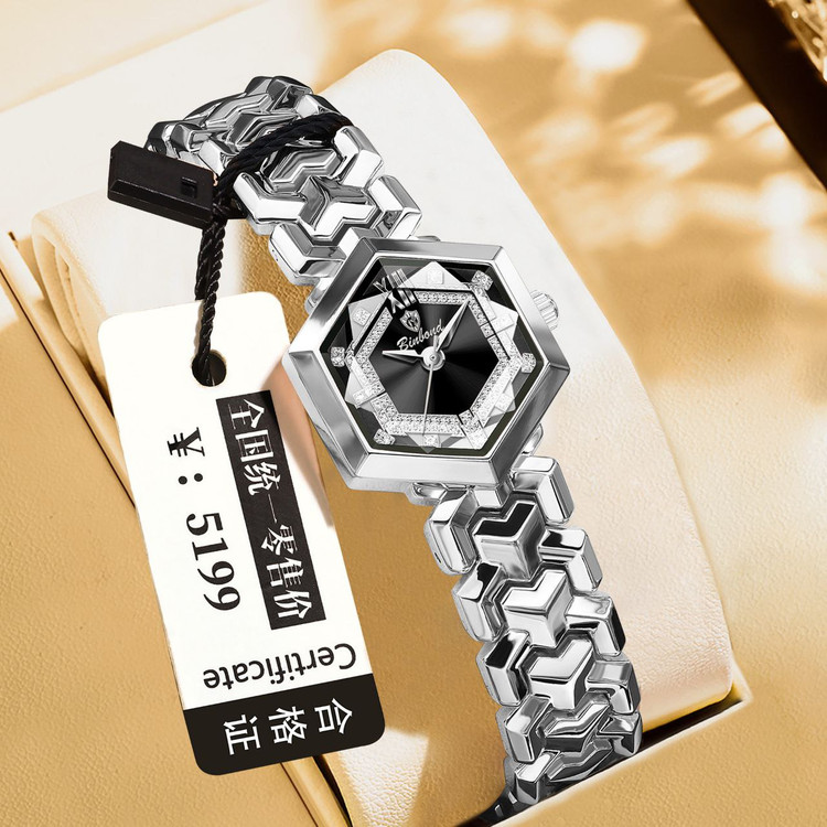 ساعت بین باند مدلی نو مناسب برای خانمها •مدل N113 جنس بندفولاد ضدزنگ سبک غیر رسمی ضخامت ۱۰ میل قطر صفحه ۲۳میل شیشه معدنی الماس ضدخش صفحه نمایش آنالوگ قفل دستبندی موتور کوارتز