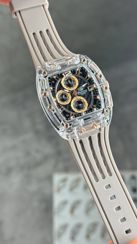 ساعت مردانه سه موتوره فعال برند ناوی فورس naviforce رنگ ثابت شیشه ضدخش روز شمار دارد ضدآب 3ATM باکس اصلی