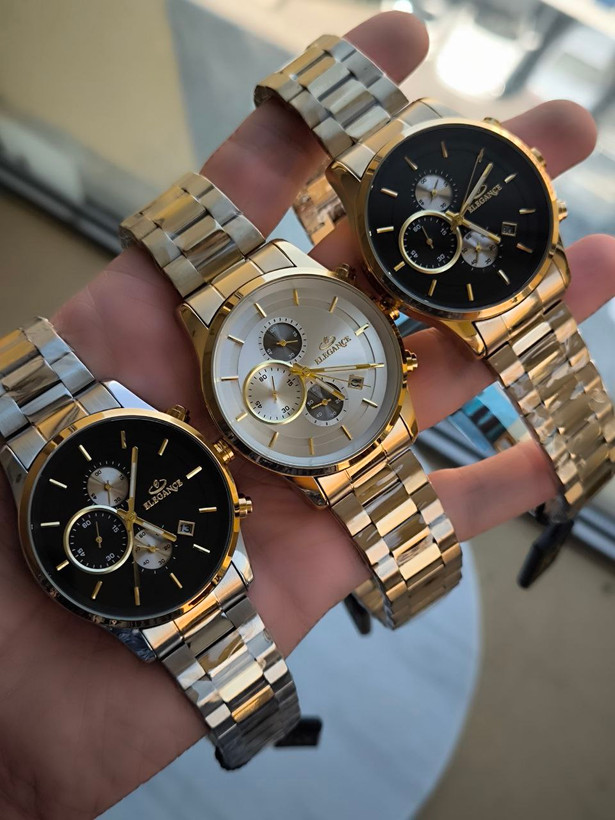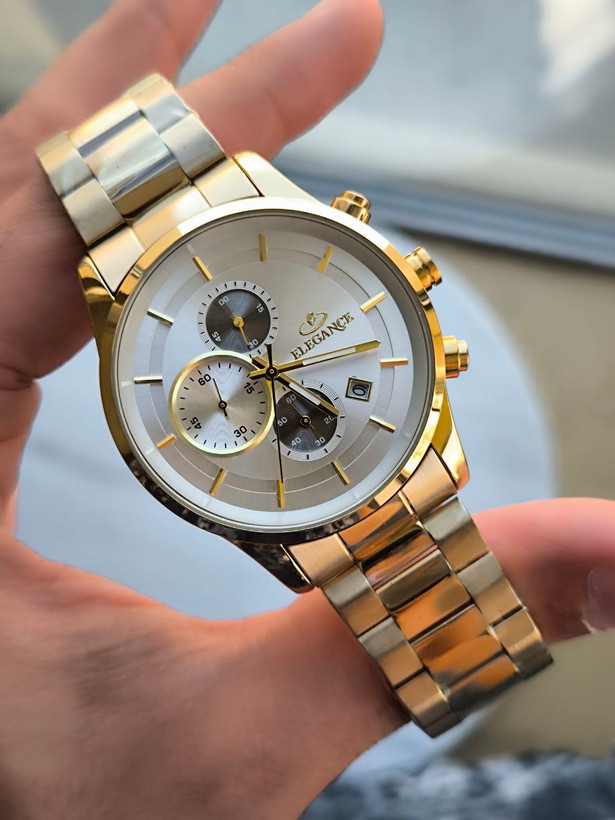 ساعت مردانه فلزی مارک الگانس 150016001976 سه موتوره فعال رنگ ثابت تقویم دار دوقفله مخفی