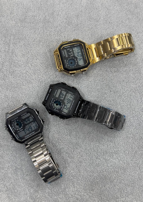 Casio word time ساعت کاسیو جهان نما قاب و بند فلزی قفل فشاری دو طرفه