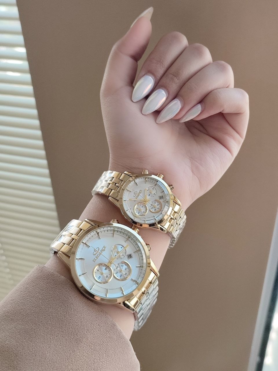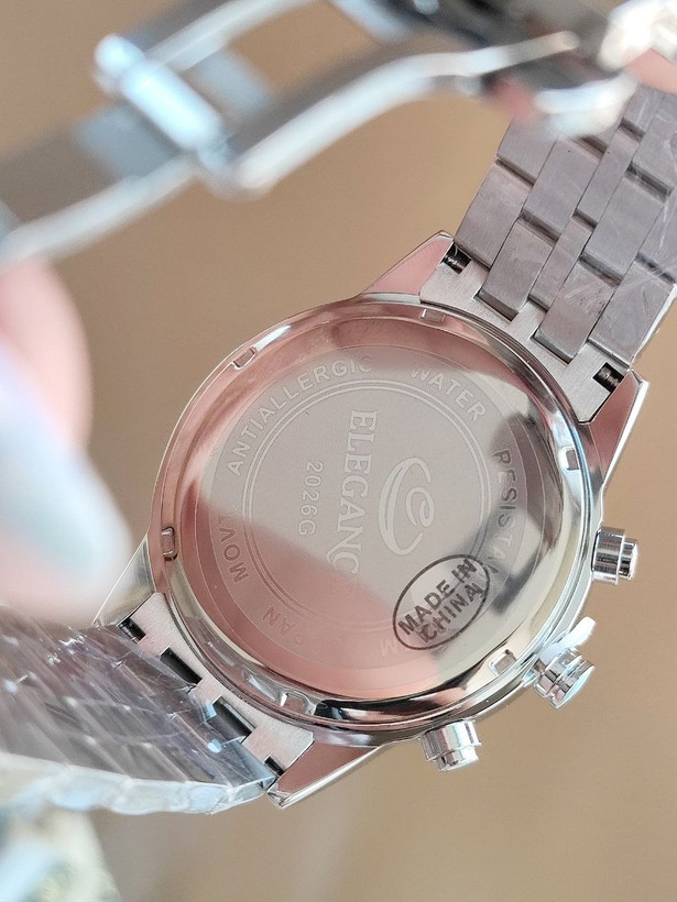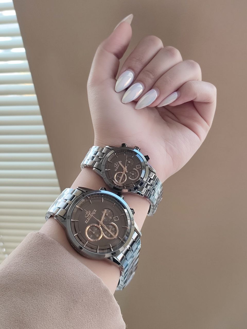 ساعت فلزی مارک الگانس 160018005797 رنگ ثابت سه موتور فعال دو قفل مخفی تقویم دار