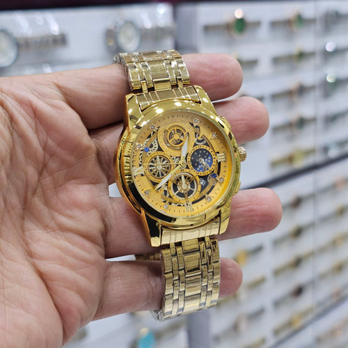 ساعت مردانه بین باند بند استیل طلایی مقاوم در برابرآب