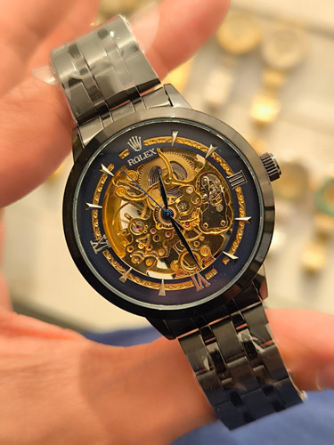 ساعت مردانه فلزی اتومات مارک رولکس اتومات بدون نیاز به باطری و رنگ ثابت وپشت شیشه ای با کیفیت بی نظیر و درجه یک