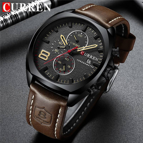 ساعت کارن مردانه بند چرم سه موتوره دارای موتور صدم ثانیه سه موتوره فعال دارای پک کامل خود برند کارن