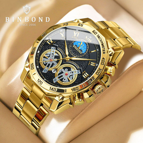 ساعت بین باند بند استیل مردانه bin bond رنگ ثابت و شب نما