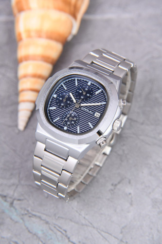 ساعت مردانه صفحه شب نما روز شمار طرح کرنوگراف برند شرکتی کیفیت عالی بنداستیل ضخامت ۱۴میلی متر قطر صفحه ۴۰.۵میل ضدآب شیشه معدنی رنگ ثابت قفل کلیپسی موتور کوارتز