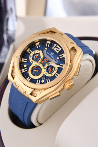 brand naviforce ساعت مردانه قطر 44 میلی متر رنگ ثاب قاب استیل بند رابر شیشه ضدخش دارای رنگبندی