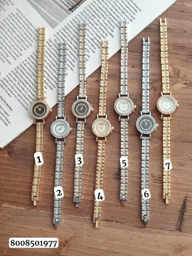 ست ساعت و دستبند و نیم ست استیل ساعت نگینی مجلسی بهمراه جعبه کادویی و باتری یدکی