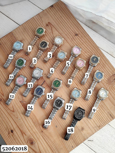 ساعت زنانه مارک رولکس ROLEX j 52062018 قفل ضامن دار دور قاب نگین دارای روز شمار موتور با کیفیت قاب و بند استیل دارای اعداد نگینی همراه با جعبه شیک